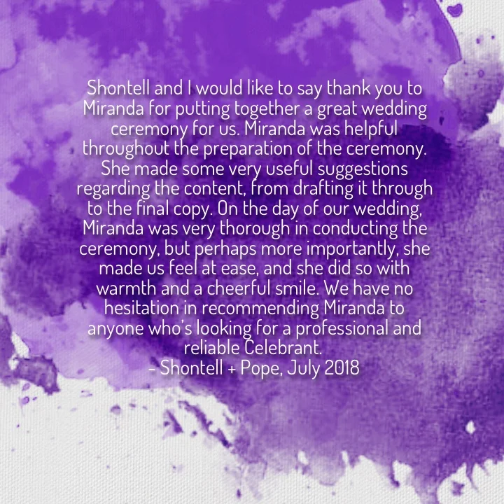 Last month I had the honour of performing Pope and Shontell's wedding ceremony. It was an afternoon full of family, laughter and love as these two brought together guests from...